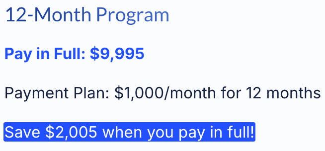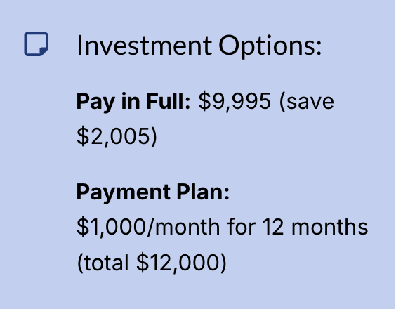 Plus ongoing mastermind access, 1:1 coaching, technical support, and our proven frameworks - easily worth $50,000+ in total value.