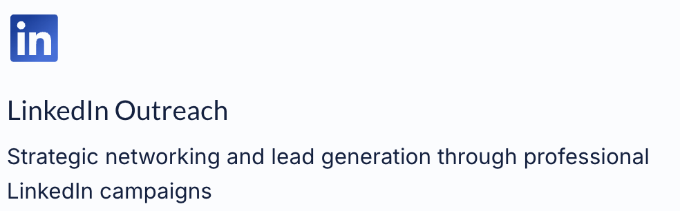 We can help with everything from custom funnels, advanced syndication strategies, and professional podcast production, to comprehensive content creation, LinkedIn outreach, and automation setup.