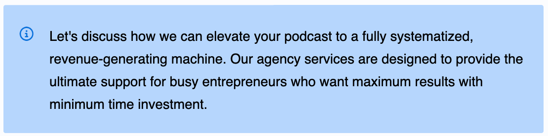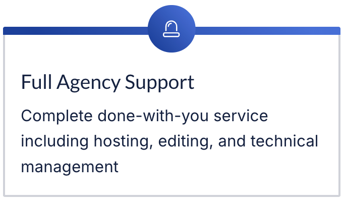 Looking for hands-on support to build out your podcast business? Our "done-for-you" agency services provide expert execution for your most critical needs.