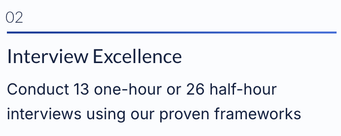 Conduct 13 one-hour interviews (or 26 half-hour interviews) with thought leaders or clients, to build credibility, connections, and reach.
