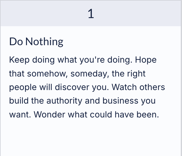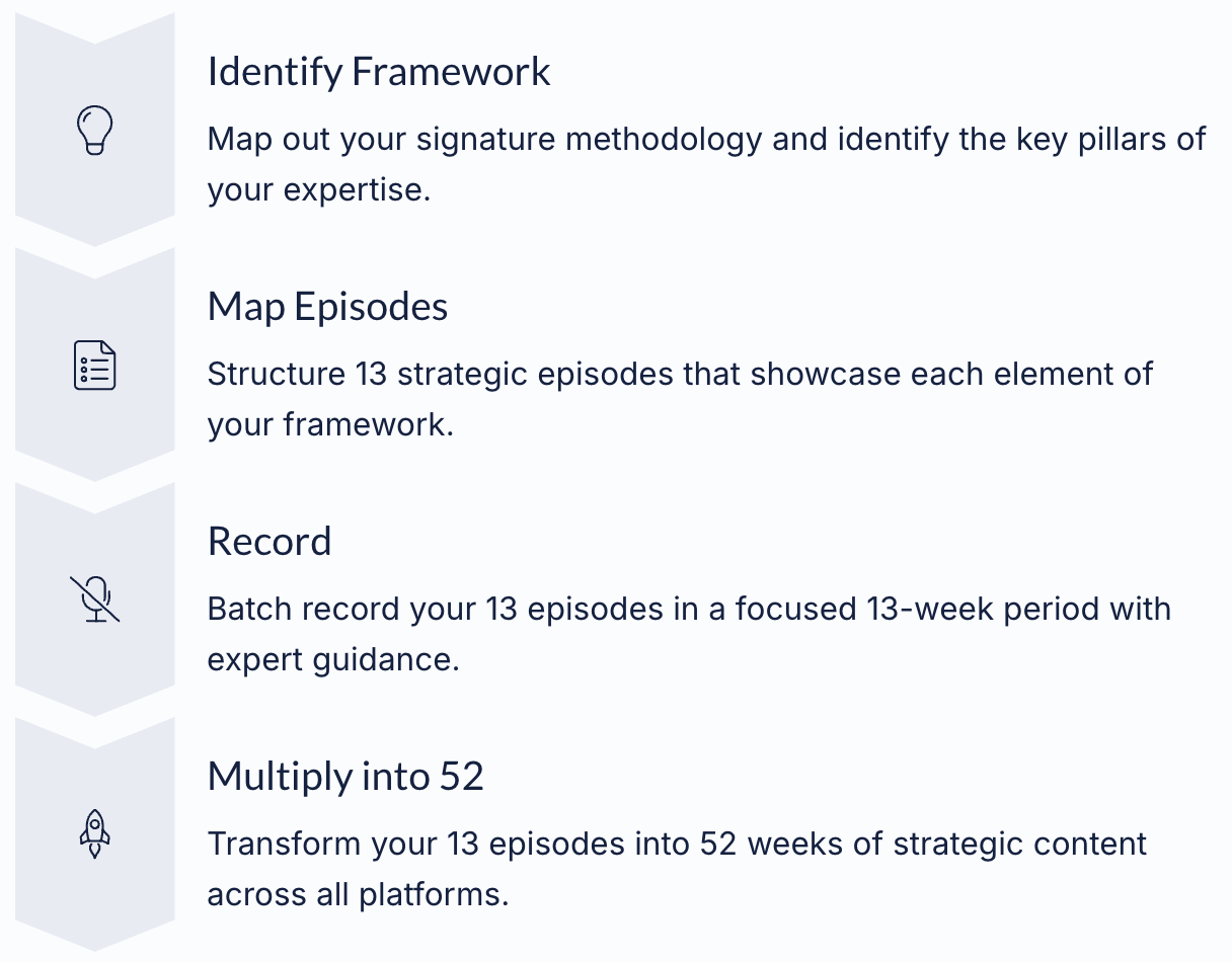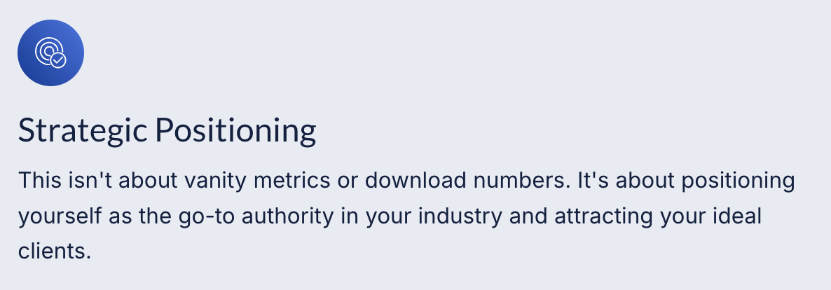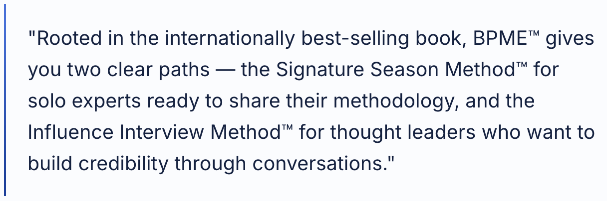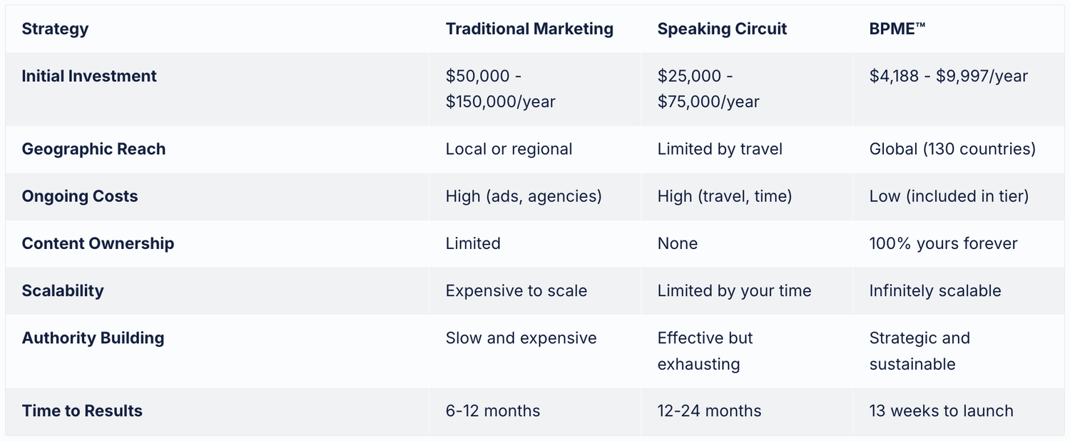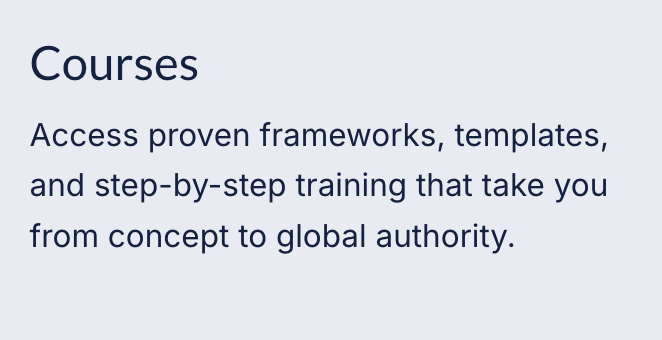 Here's the truth: Your expertise has an expiration date. Not because it becomes less valuable — but because someone else will step up, claim the spotlight, and become the recognized authority in your space. While you're waiting for the "perfect time" or trying to figure it out alone, your competitors are building platforms and capturing market share.